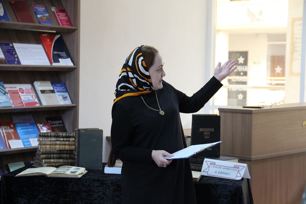 Урок информационной культуры к 135-летию выхода словаря Ф.А. Брокгауза и И.А. Ефрона «Брокгауз и Ефрон – история одного энциклопедического словаря» состоялся в информационно-библиографическом отделе Национальной библиотеке ЧР им. А.А. Айдамирова 31 октября.