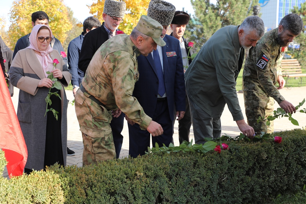 Мероприятие началось с торжественной церемонии возложения цветов у мемориальной плиты Первого Президента Чеченской Республики Ахмат-Хаджи Кадырова и памятника легендарному кавалеристу, Герою Советского Союза Мовлида Висаитова. Это символичное соседство двух памятников подчеркивает непрерывную связь времен и общность подвига во имя Родины.