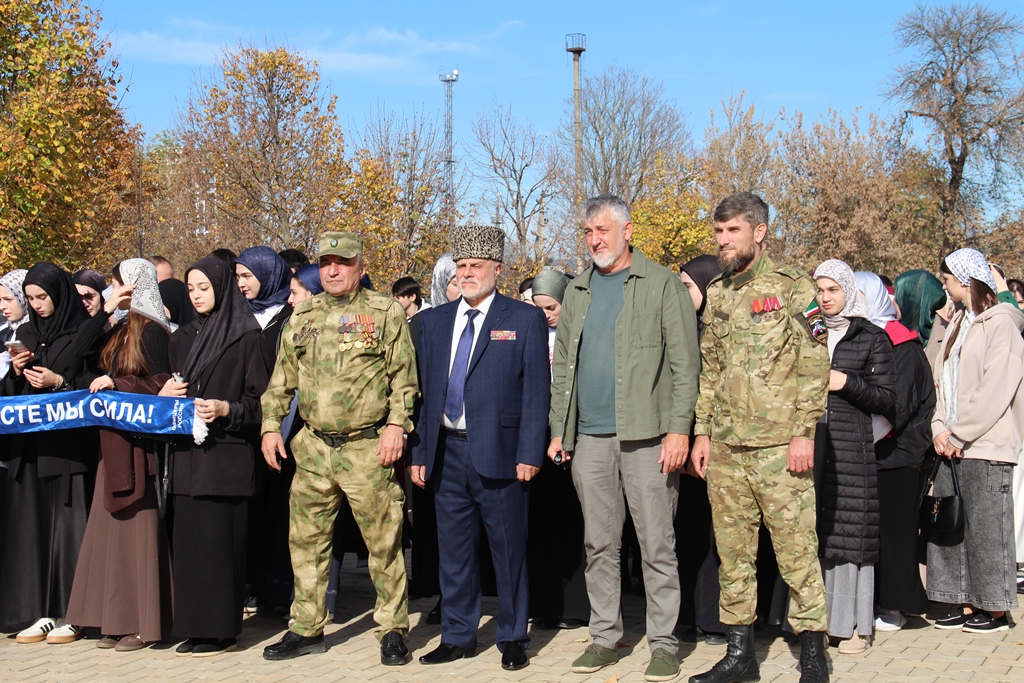 Центральным событием акции стала встреча с почетными гостями: председателем Президиума РО ООО «Офицеры России» в ЧР Мовлой Гайрахановым, председателем ЧРО «Ассоциация ветеранов СВО» Шахрудином  Таймусхановым, заместителем председателя исполкома РО ООО «Офицеры России» в ЧР Мусой Бисиевым, заместителем председателя ЧРО «Ассоциация ветеранов СВО» Русланом Кациевым и председателем исполкома РО ООО «Офицеры России», участником Афганской войны Хасаном Нанаевым.