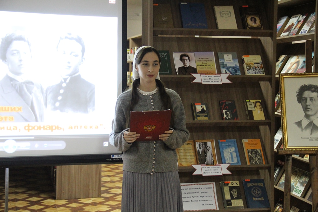 26 ноября в Национальной библиотеке Чеченской Республики им. А.А. Айдамирова звучали строки, знакомые каждому со школьной скамьи: «Ночь, улица, фонарь, аптека…», «О доблестях, о подвигах, о славе…», «О, я хочу безумно жить» и т.д. Поводом для этой поэтической встречи стал значимый юбилей – 145 лет со дня рождения одного из самых ярких символов Серебряного века, Александра Александровича Блока.