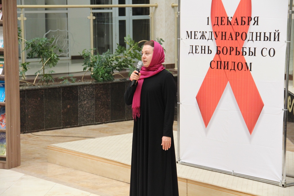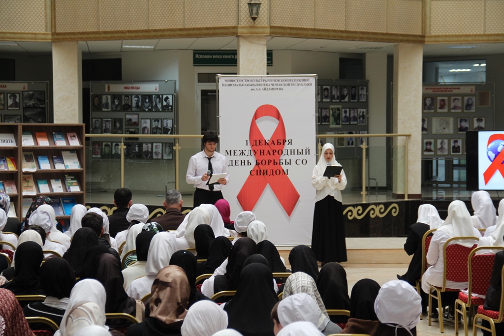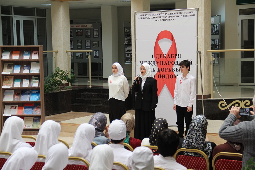 Национальная библиотека ЧР им. А.А. Айдамирова не осталась в стороне от этой глобальной проблемы. 1 декабря в Зимнем саду библиотеки прошла акция «Вместе против СПИДа», в которой приняли участие сотрудники центра профилактики Республиканского наркологического диспансера, Республиканского клинического центра инфекционных болезней, профилактики и борьбы со СПИДом, Республиканского центра медицинской профилактики и общественного здоровья, студенты и преподаватели Колледжа управления и дизайна, Чеченского базового медицинского колледжа и Гуманитарного колледжа «Эдельвейс».