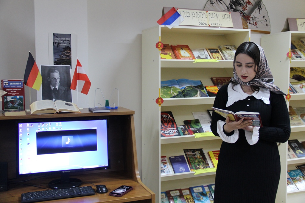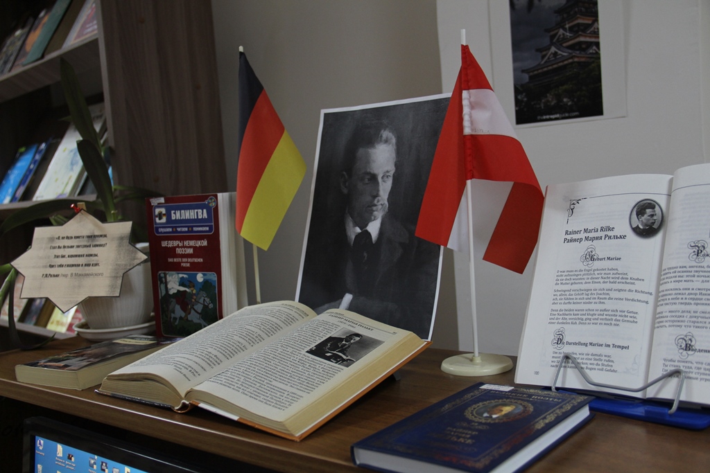 К 150-летию поэта отдел литературы на иностранных языках подготовил для любителей поэзии поэтический час «Как нитки ожерелья звуки рвутся…». Вела вечер заведующая отделом Наталья Магомадова. Программа вечера состояла из чтения стихов на немецком (языке оригинала) и в русских переводах (Б. Пастернака, В. Микушевича, К. Азадовского и др.), обсуждения ключевых тем поэзии Рильке и др.
