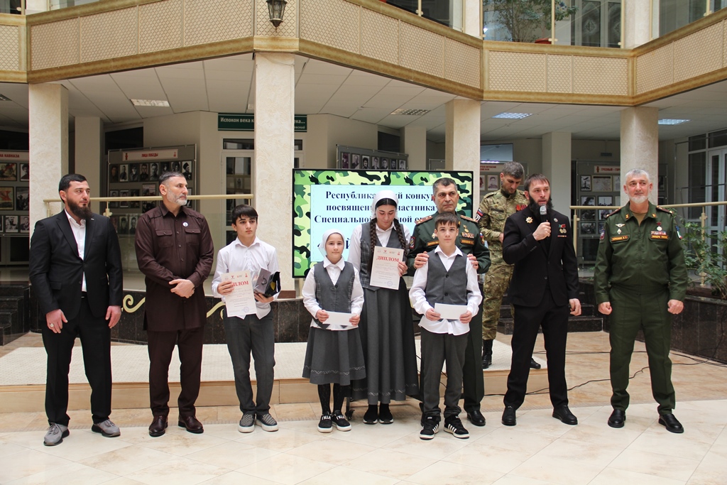 В конкурсе, который проходил в течение нескольких месяцев, приняли участие школьники со всех уголков Чеченской Республики. Ребята представляли свои работы в номинации «История Героя» в двух возрастных категориях до 14 лет и от 14 – 17 лет. Дипломы, ценные подарки, денежные призы участникам конкурса вручали почётные гости – депутаты, члены общественных организаций, ветераны боевых действий и др.