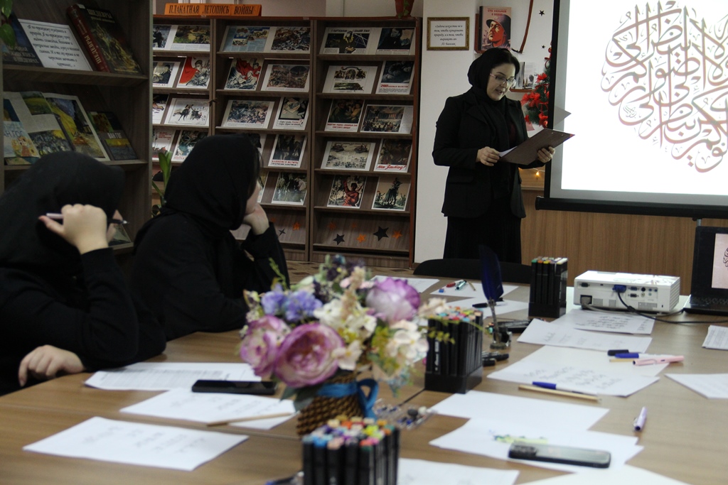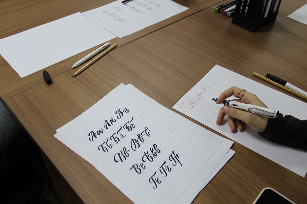 Под руководством заведующей отделом М. Умаровой участники познакомились с историей каллиграфии, освоили азы работы с пером и тушью и попробовали свои силы в создании изящных букв. Программа началась с теоретической части, в которой ведущая рассказала об эволюции стилей письма от античности до современности. Она познакомила гостей с богатством мировых традиций, подробно остановившись на особенностях арабской, китайской и европейских школ каллиграфии. Участники также погрузились в историю шрифтов и книжной графики, а затем детально разобрали профессиональные инструменты и материалы, узнав о специфике работы с каждым из них.