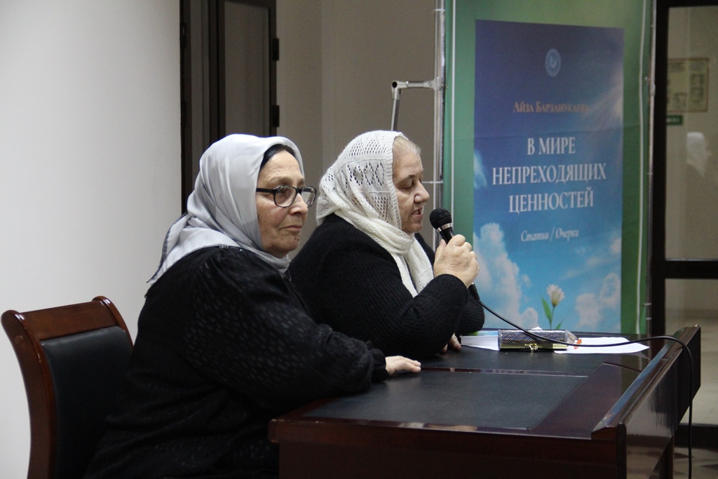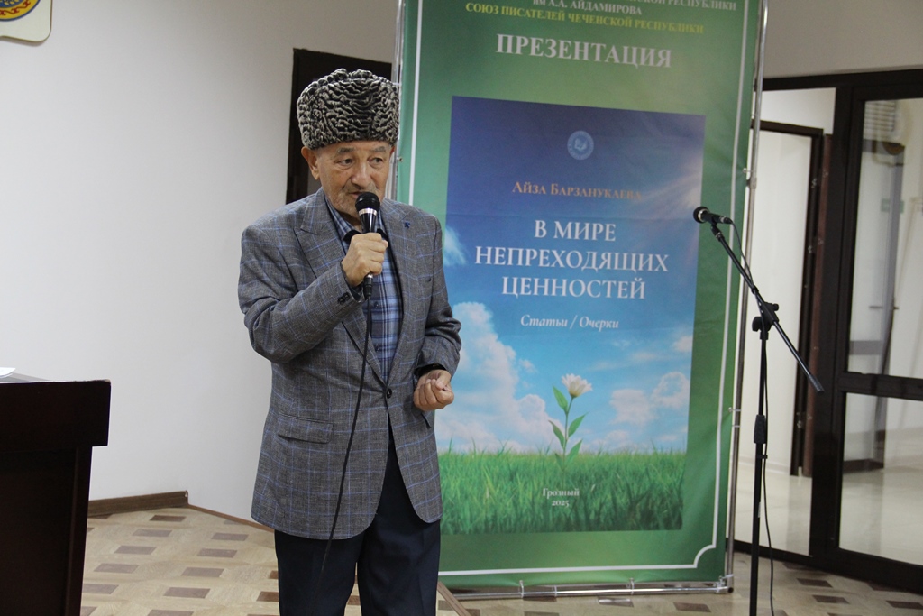 19 декабря в Национальной библиотеке ЧР им. А.Айдамирова прошла презентация книги известной журналистки Айзы Барзанукаевой «В мире непреходящих ценностей». В книгу вошли 29 очерков о чеченских писателях. Ведущей мероприятия выступила Аза Газиева. Она представила автора книги и отметила, что книга «В мире непреходящих ценностей» ценна тем, что в ней представлены критические статьи. По словам Азы Газиевой «Критика сегодня – явление редкое, а глубокий, профессиональный анализ творчества современных писателей особенно важен для понимания литературного процесса». Она отметила, что книга будет служит своеобразным мостом между автором и читателями, помогая раскрыть глубину и значимость художественных произведений чеченских писателей.