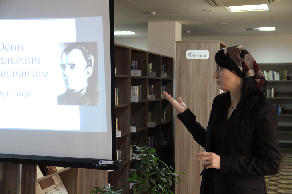 15 января в отделе абонемента Национальной библиотеки ЧР имени А. Айдамирова прошел поэтический вечер «Дыханье вещее в стихах моих…», приуроченный к 135-летию со дня рождения одного из величайших поэтов Серебряного века и мировой литературы Осипа Эмильевича Мандельштама. Творчество Мандельштама – это целая вселенная, в которой переплелись античность и современность, музыкальность слова и глубокая философская мысль. Участники вечера погрузились в сложный, но притягательный мир поэта, чья судьба стала отражением трагической истории нашей страны.