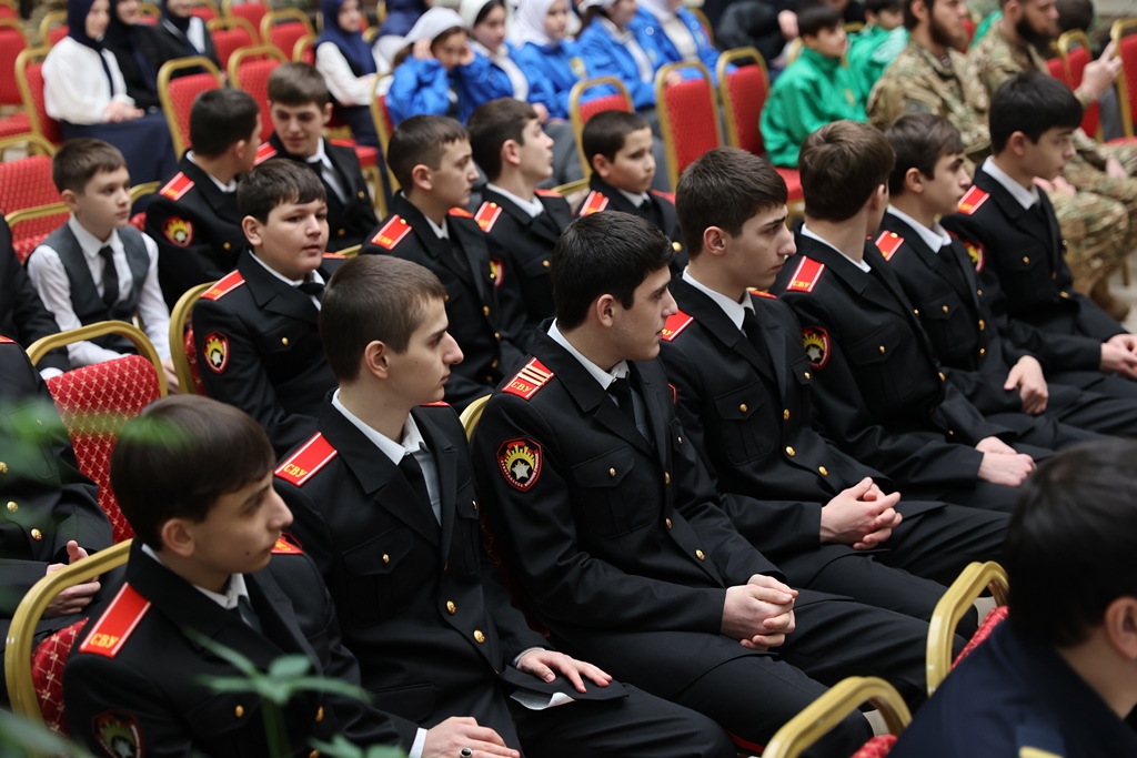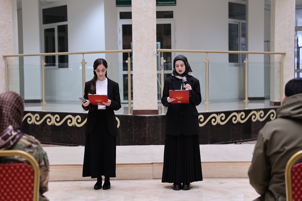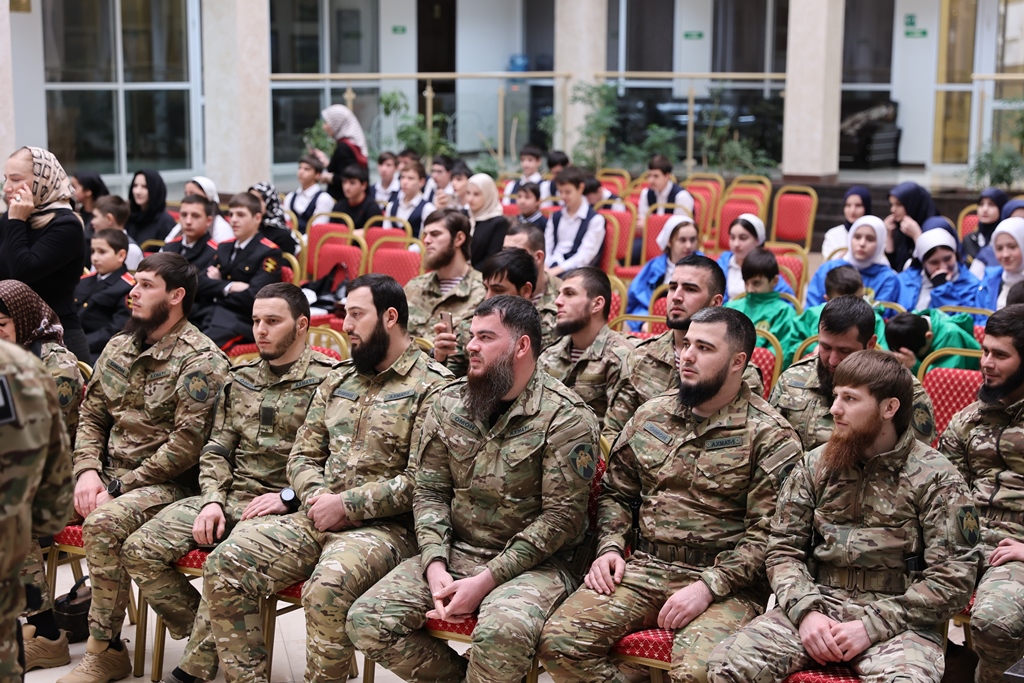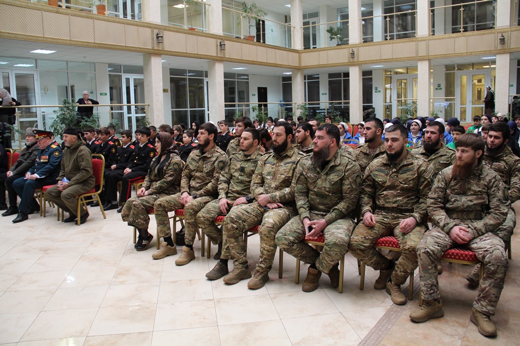 В мероприятии приняли участие военнослужащие Управления Росгвардии по Чеченской Республике ОМОН «Ахмат-1», учащиеся городских школ, общественные деятели, курсанты Суворовского училища, члены детско-юношеской организации «Юные Кадыровцы» и др.
